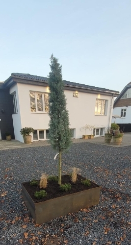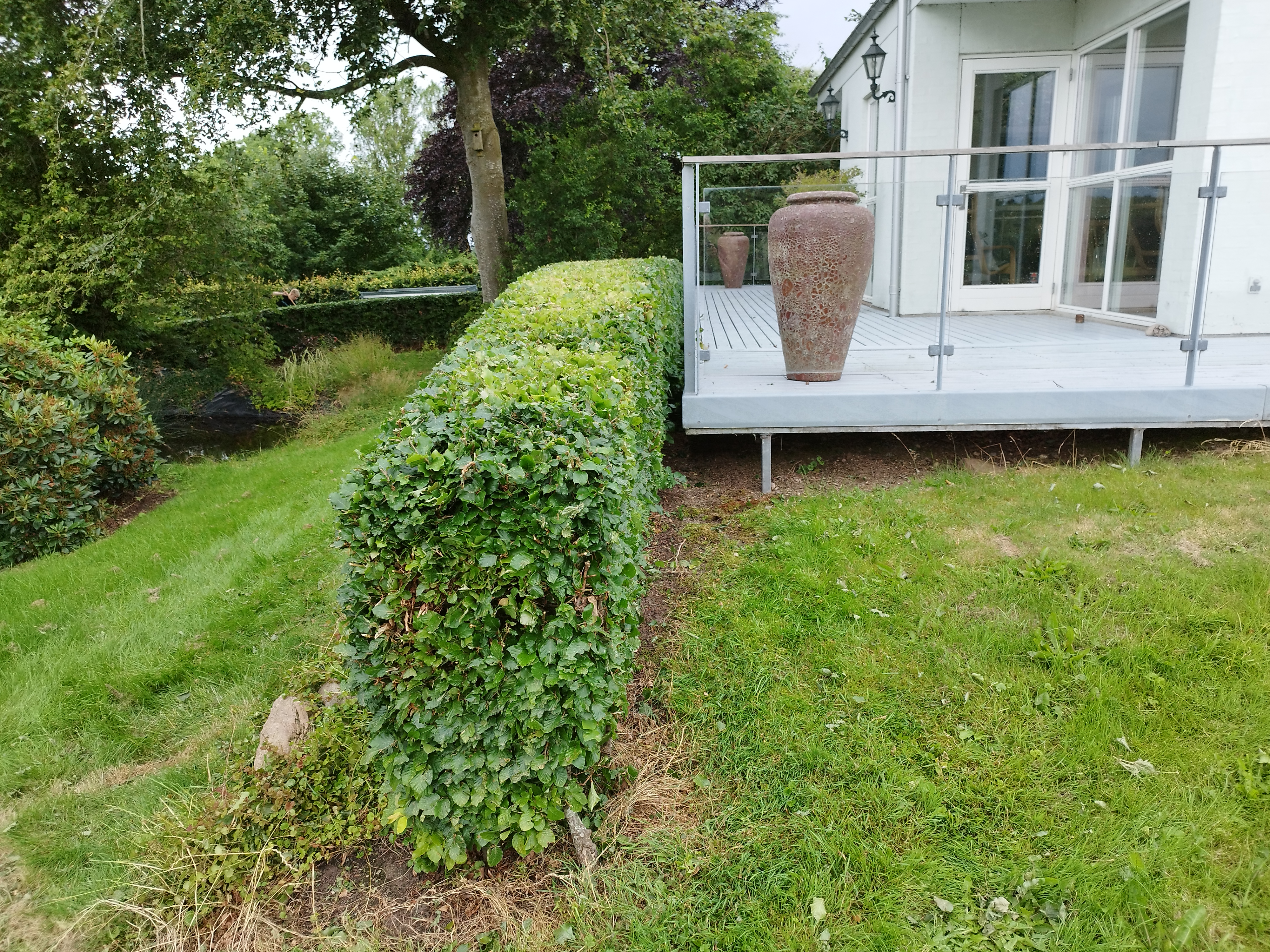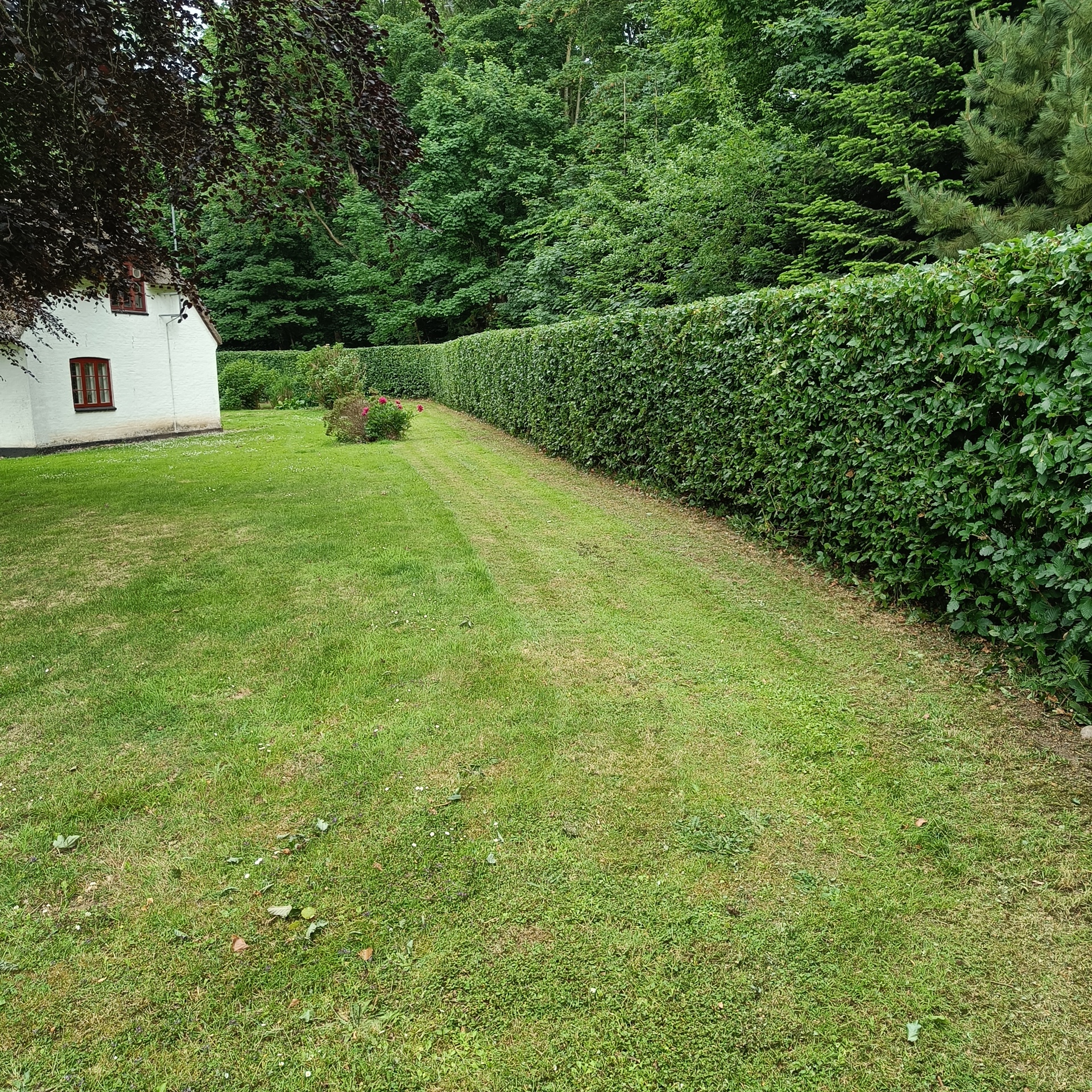 - Pleje og beskæring: Vi beskærer hækken korrekt, så den forbliver sund og tæt, uden at den bliver for ranglet eller tynd.